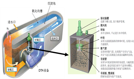 一體式節(jié)能高效氧化溝污水處理裝置是我公司研發(fā)并推廣使用的一款專(zhuān)門(mén)用于村鎮(zhèn)生活污水污水處理的新技術(shù)。該技術(shù)處理污水的基本原理是活性污泥法,采用的工藝是奧貝爾氧化溝,其核心設(shè)備是一體化曝氣和水流推進(jìn)設(shè)備,該設(shè)備代替了傳統(tǒng)氧化溝工藝的表面曝氣和水下推進(jìn)設(shè)備,實(shí)現(xiàn)了高效的氧傳質(zhì)和水流推進(jìn)目的,使出水水質(zhì)可穩(wěn)定達(dá)標(biāo)。